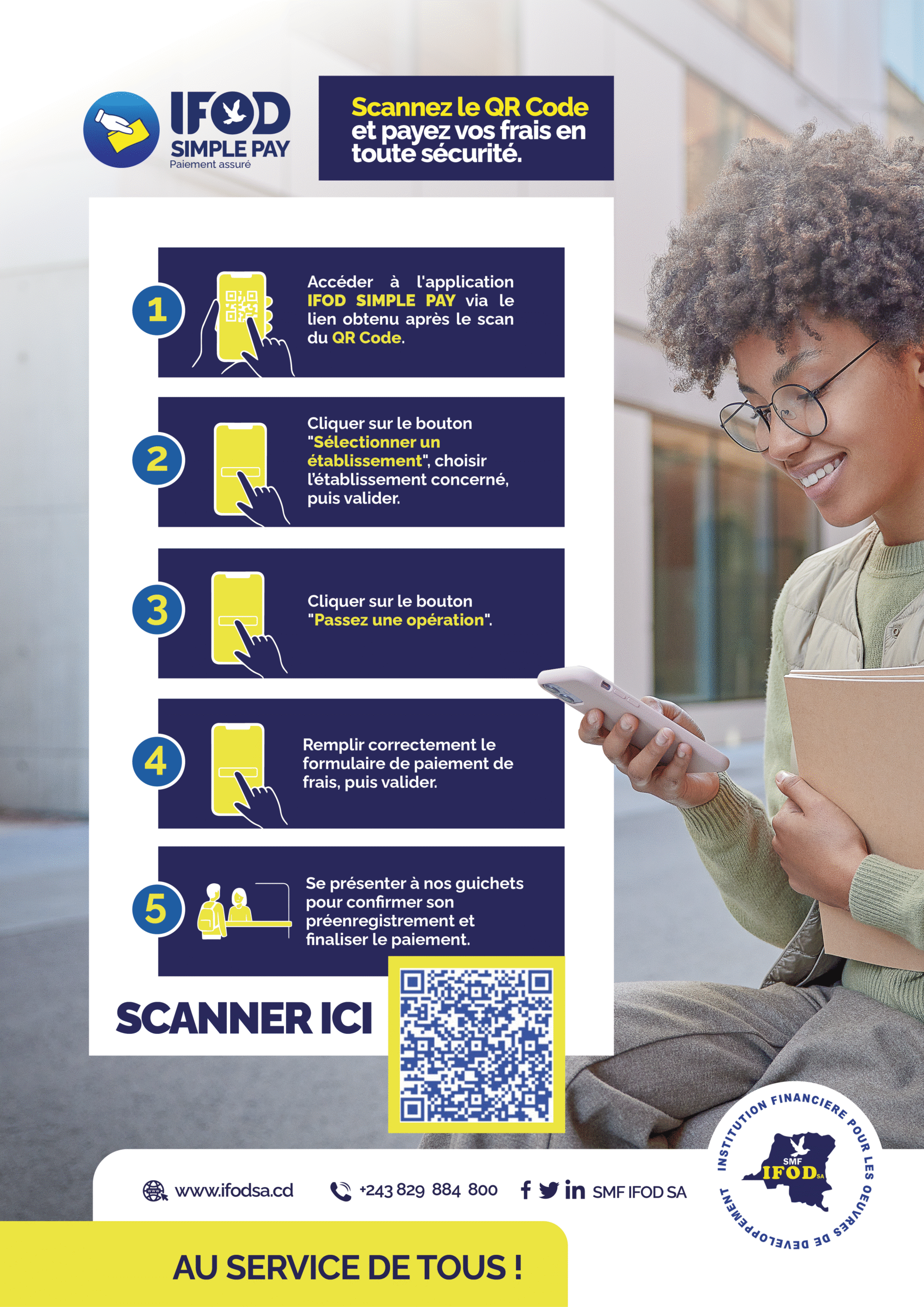 Avec IFOD SIMPLE PAY, payez plus simplement, plus rapidement et en toute sécurité. Notre plateforme digitale centralise tous vos paiements — scolaires, universitaires, médicaux, administratifs — avec un suivi clair et fiable.